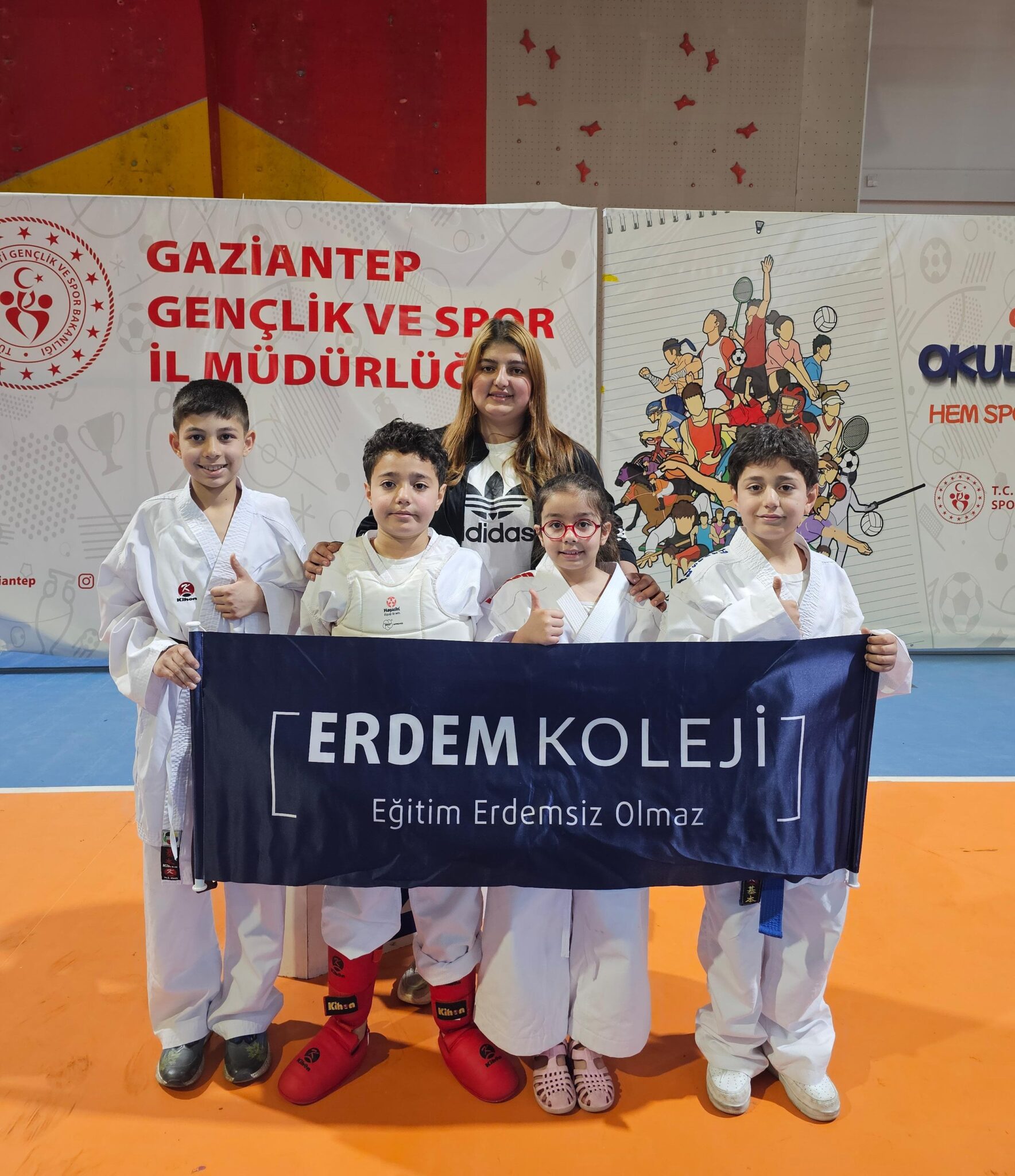 Erdem Koleji’ni temsilen turnuvaya katılan öğrencilerden Muhammed Deniz Akyüz, kumite kategorisinde birincilik elde ederken, kata dalında da üçüncülük başarısı gösterdi. Damla Nur Doğan, kata branşında ikinci olarak önemli bir dereceye imza attı. Rüzgar Bekir Akyüz ise aynı kategorideki başarılı performansıyla ikinci sırada yer aldı. Bu sonuçlarla Erdemli sporcular, Gaziantep’i Türkiye genelinde temsil etme gururunu yaşayacak.
