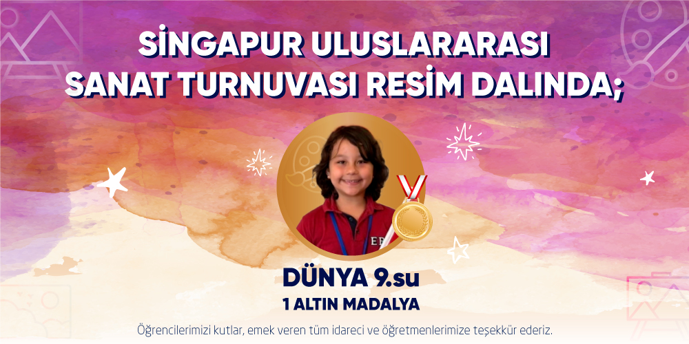 Gaziantep Erdem Koleji; LGS, YKS, spor ve akademik alanda sayısız başarı elde ederken, güzel sanatlar alanında uluslararası bir dereceye imza attı. Alanında büyük prestij taşıyan Singapur Uluslararası Sanat Turnuvası’na (SIAT) katılan Erdem Koleji öğrencilerinden ilkokul öğrencisi Zeynep Eda Elbeyli, resim dalında altın madalya kazandı. Elbeyli bu derecesi ile genel klasmanda Dünya 9.su Türkiye birincisi oldu. Ayrıca ilkokul öğrencisi Cemre Su Çağlar ve ortaokul öğrencisi Yara Kabani resim alanında sergileme (Mansiyon) ödülünü alarak büyük bir gurur yaşattılar. SIAT 2024’ten altın madalya alan Zeynep Eda Elbeyli Aralık ayında İstanbul’da yapılacak olan STEAM AHEAD finallerine katılmaya hak kazandı.